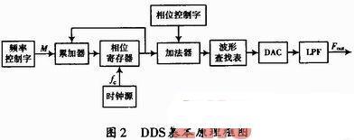DDS技术是一种全数字的频率合成技术,是将已知的信号经过取样、量化,形成可供查询的数据表存于数据ROM中,通过改变频率控制字来改变输出所需频率的一种技术。如图2所示,DDS主要由频率控制字、累加器、相位寄存器、时钟源、加法器、相位控制字、波形查找表、DAC和LPF等模块组成。但因本设计不需要模拟信号,直接使用其中的数字信号,故不需要DAC和LPF模块,全部在FPGA内部数字化实现。数字三角波的产生和数字正弦波的产生一样,惟一不同就是在波形表中用量化后的三角波数据代替正弦波数据。