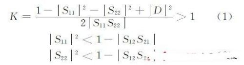 稳定性是指放大器抑制环境的变化(如信号频率、稳定、源和负载等变化时),维持正常工作特性的能力,一个微波管的绝对稳定条件是: