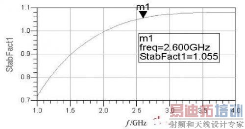 在选定的晶体管的工作条件下若满足K》1,则此时放大器处在绝对稳定状态,若不满足此条件,则需进行稳定性匹配电路的设计。