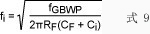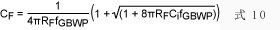 式8所示交点频率fi等于单位增益带宽fGBWP与β(jω)极点频率fF的几何平均。用式7替代fF,得到: