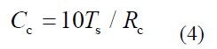 为保证电容 Cc 两端电压纹波足够小,需RcC c 》 Ts ,取10 倍关系,则电容 C c的大小由式(3)确定。