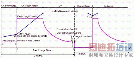 目前锂离子电池的充电器常采用三段充电法,即预充电模式(Pre-Charging Mode)、定电流充电(Fast Charging Mode)、定电压充电模式(Constant Voltage Mode)。锂离子电池终止放电电压为2.5V。设计完善的充电器可对过放的电池进行挽救修复,即在正式充电前进行预处理。于充电前先检测电池的电压:若电池电压大于 3V,则按正常方式充电;若电池电压低于3V,则以小电流(约为10%的定电流模式充电电流)充电称之为预充电模式,让处于深度放电状态下而溶解的钝化膜进行还原。此外,当电池过度放电时,还可能释出部分铜金属在阳极造成短路,此时若以高电流进行强迫充电就会导致电池过热,而预充电阶段则能避免这种现象发生。等充到3V后再按正常定电流方式充电。
