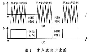 以掌声作为输入信号,见图1波形示意图,图1(a)为掌声输入信号,图1(b)为经正向整流滤波后的波形示意图。