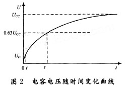 此时C5上的电压为0.63 VCC=3.8 V。实际上电容上的电压只要大于双D触发器的最小高电平触发电压0.3 VCC=1.8 V,双D触发器就会翻转。由RC一阶零状态响应规律可导出对应的时间为: