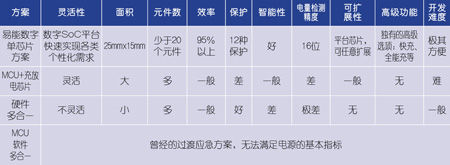 具体到目前移动电源市场已有的方案可谓五花八门,良莠不齐。移动电源厂商对于个性化、高性能的需求使得现有芯片方案无法满足市场的需求。移动电源方案的分类如表中所示。