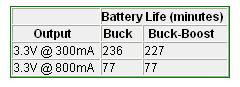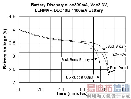 降压转换器方案中,当输出降至比3.3V的标定输出低5%时,电池寿命即终止;而在降压/升压转换器方案中,电池寿命的终止则以电池和转换器的关闭为标志。