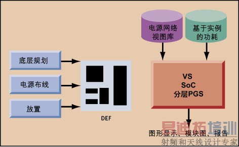 在设计流程的下一步,芯片集成或物理设计小组利用布线的DEF描述及由库设计小组创建的电源网络视图库对底层规划进行分析,模块设计人员可以使用类似的方法分析他们设计的模块。