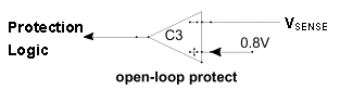 如图所示,一旦出现开环故障,MOSFET门开关立即停止工作,输出电压没有过冲。