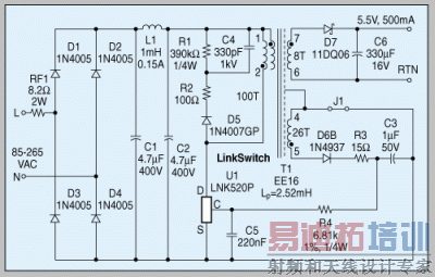 在获得解决方案后,软件可提供很多的优化设计的方法。图2显示一款根据LinkSwitch器件设计的2.75W适配器(EP 54)的原理图。