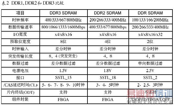 为了对DDR1、DDR2和DDR3 SDRAM间的差异进行比较,参考表2。