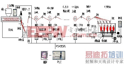 柔性生产线具有配置简单,自动化程度高,可程序化和重新配置的优点,而被广大用户所采用。化纤柔性生产线中,挤出机是整个设备的重要部分,而后续各卷绕部分的速度同步才是整个系统的关键。系统中多电机速度同步精度的高低,直接影响着化纤丝成品的质量。