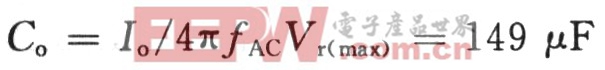 式中:△Vcin(max)为滤波电容的最大纹波电压,一般情况下,该值可取小于最低输入电压峰值的5%。将主要参数代入式(2)得: