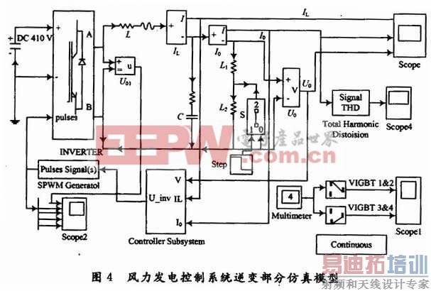 风力发电机发出的电能电压为三相交流电,且输出电压较低,需经过整流器进行整流,得到的直流电在经过控制器的作用下对蓄电池进行充电,设计中采用的是三相桥式不可控整流。而对于直流变换电路主要功能是:调节直流输出电压使之恒定,以达到后级逆变电路输入要求;提高逆变电路的功率因数并抑制高次谐波,完成功率因数的校正,所以可采用直流Boost升压斩波电路。选用全桥逆变电路,其特点为带负载能力强,电路容易达到大功率;又由于LC滤波器有着对输出波形中的高次谐波进行滤波处理的能力,因此选用了输出端带LC滤波器的单相全桥逆变电路的拓扑结构,以使逆变电路输出高质量的正弦波形。[p]
