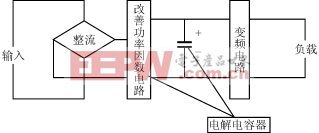 低压通用变频器,其主电路控制方式一般采用VVVF变频、矢量控制变频、直接转矩控制变频和矩阵式交-交控制变频等。除采用矩阵式交步豢刂品绞降谋淦灯魍猓另三种控制方式的变频器其电路结构均为交-直-交变频。其共同点是输入功率因数低、谐波电流大,直流电路均需要大的储能电容。而矩阵式交-交变频虽省去了中间直流环节,从而省去了体积大、价格贵的电解电容器。但该技术目前尚未成熟,不能推广应用。因此在目前实用的变频器中,均需使用大型铝电解电容器来平滑变频电路的输入电压。