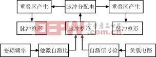 常见的他激转自激线路这里也没有选用,他激转自激,是指在低电压使用他激信号,随着电压的升高自动变为自激信号,这也就使它有一个缺点,当感应器换掉,他激和自激频率有差异时,就会产生电压上升过程中过流的现象。在我们的设备是将他激的固定频率发生器改进为变频的频率发生器,既从100kHz逐步变为10kHz,同时检测谐振电压,在谐振点时变自激并且过零触发,保证设备工作在零度。逆变线路控制框图如图4所示。