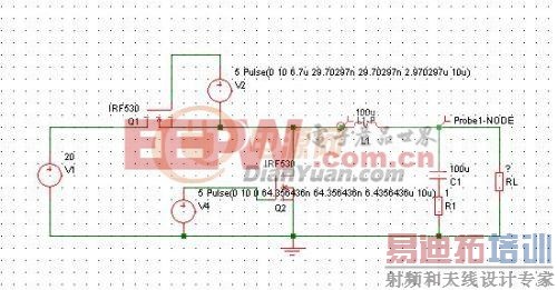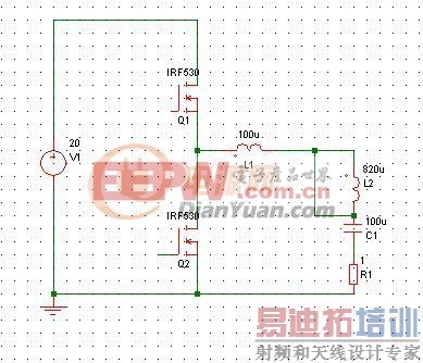 最近看到一个有趣的电路,如下图,输入电压为20V直流,Q1,Q2交替导通,频率100kHz,负载RL待定,大家说说这个是什么电路