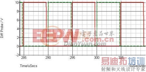 红色为C1电压波形,绿色为Q1的驱动波形。
