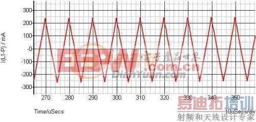 看一下仿真的电感L上的电流波形: