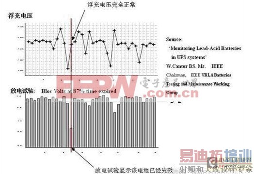 针对蓄电池的运行机理和失效模式,国内已经有相关的标准出台,在直流供电的场合安装对蓄电池监测的必要装置,比如电压巡检仪等。但是根据后备蓄电池的工作条件,有可能长期不放电,在两次定期核对性放电测试期间,同样有可能失效,而电池的端电压是完全正常的。如下图(摘自IEEE):
