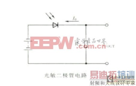 如果要想人为地增加漏电流,只要想办法增加反偏时少数载流子的数量即可。所以,如图B,如果能够在P区或N 区人为地增加少数载流子的数量,很自然的漏电流就会人为地增加。其实,光敏二极管的原理就是如此。光敏二极管与普通光敏二极管一样,它的PN 结具有单向导电性。