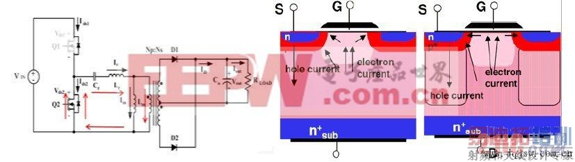 -传统MOSFET此时电子电流经沟道区,从而减少空穴数量
