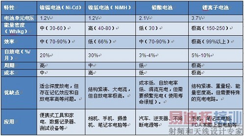 1. 不同类型的充电电池