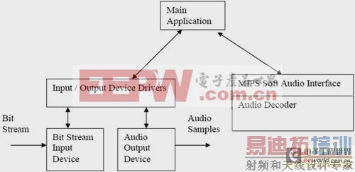 音频解码器通常作为驱动器应用进行存取。驱动器的作用是从适当的输入设备提取引入的位流,并将经过解码的位流发送到音频输出设备,如图2所显示的那样。它也可以执行其他后处理功能,例如在发送到输出设备之前,对经过解码的音频位流进行低音控制。驱动器通过一个标准接口机制访问MIPS的音频产品,也就是MIPS的软音频接口(Soft Audio Interface,SAI)。这个通用接口可使各种来自MIPS科技的音频解码器易于与主应用进行连接。