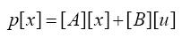 式中,[x]是n维状态参数矩阵, [u]是m维输入矩阵,[A]、[B]分别为nxn维系数矩阵和nxm维控制矩阵,p 是微分算子。