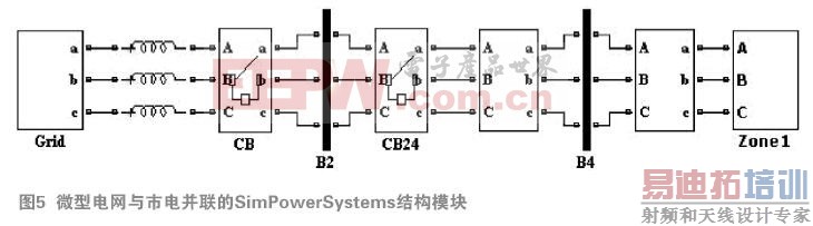 与市电并联的微型电网SimPowerSystems模块结构如图5所示,Zone1的SimPowerSystems模块如图6所示。