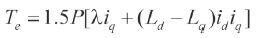 式中Vd,Vq为d轴和q轴电压,id,iq为d轴和q轴电流,Ld,Lq为d轴和q轴漏电感,R为定子侧电阻,ωr为转子角速度,λ为永磁体磁通量,P为极。