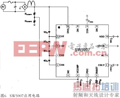 SW5907是韩国新一代的高压线性恒流驱动芯片,在220V的情况下可单颗支持20W,最大输出电流120mA,PFC>0.95,且具有自动过温和过压保护,内置四个耐压500V的MOS管。其独有的专利技术,可在电压大幅波动20% 的情况下,保持功率和热量在5% 的范围波动。因此,采用高压线性恒流IC驱动方案设计整灯的应用电路简单而高效。
