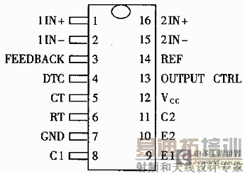 控制信号由集成电路外部输入,一路送至时间死区时间比较器,一路送往误差放大器的输入端。死区时间比较器具有120mV的输入补偿电压,它限制了最小输出死区时间约等于锯齿波的周期4%,当输出端接地,最大输出占空比为96%,而输出端接参考电平时,占空比为48%。当把死区时间控制输入端接上固定的电压,即能在输出脉冲上产生附加的死区时间。