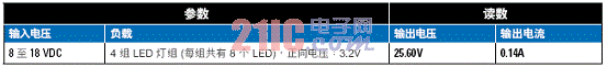 • 这款电路利用12V总线的电池供电驱动4组、每组共有8个串联一起的140 mA LED,最适用于汽车TFT显示器的LED背光灯。