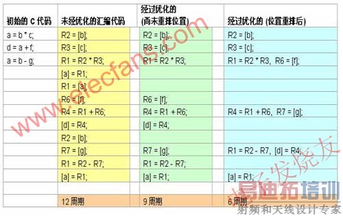 编译器的优化,即使实现了逻辑上的正确性,有时也仍然会造成故障。采用低水平的设备驱动器时,这一问题特别关键。重排指令是实现更高性能的常用方法,因为处理器常常支持单个周期内执行多条指令。因此,编译器将试图调度指令,使得所有的指令时间片都得到充分的利用,即使这意味着在寄存器使用前很久就载入数据,或者在数值被计算完毕后很久,也让内存保持载入的数据。请看附图,其中描述了这种内存的移动是如何发生的。