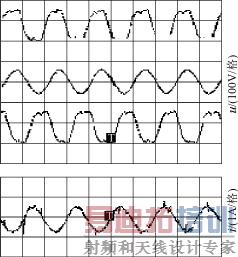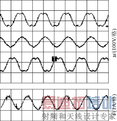 图10及图11为在TMS320LF2407A最小控制系统下的实验波形,可见与仿真波形相似。实验样机设计输出功率为2000V·A,输入是220V,50Hz单相交流电,输出为可在0到1000Hz连续变化的三相交流电。由于IR2130自带2μs的死区,使得模式2的PWM波形不再具有对称性,这导致了实验中输出相电压马鞍波形畸变得更大些。但从线电压,线电流上看,两种方法所输出的波形均具有很高的正弦性。