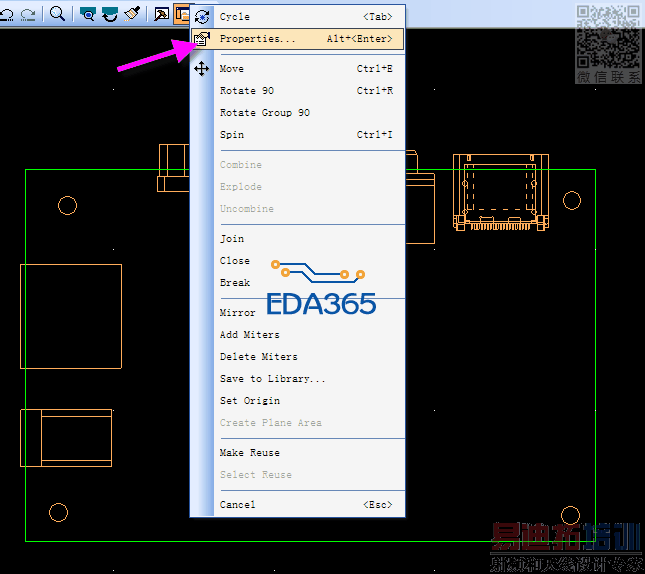 这时,需要对导入的结构图作一些处理:将结构图信息移到装配顶层(assembly drawing top),主要是为了防止设计时不小心移动了结构信息。全选后,点右键,进行属性对话框: