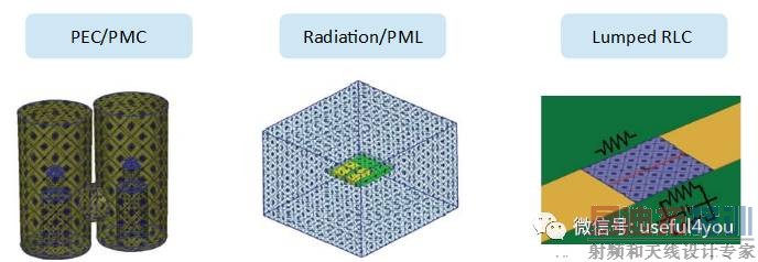 HFSS提供的边界条件高达数十种,其实经常用的也就三种,一是理想导电/导磁边界,二是开放边界,三是集总加载边界,分别如下图所示