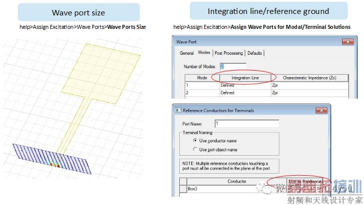除本征模分析以外,其它频域仿真都需要外加激励(空间场/波端口/集总端口),特别在应用波端口激励时,需要定义积分线(方便定义模式和等效电压),当求解模式为终端驱动时,还需要注意参考地的设置。