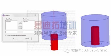 1. 如果是同类属性的材质(如金属或介质),有部分交叠时,需要在两者材料中进行相减布尔运算,如图(a)所示,否则validation check时3D model将报错 ;
