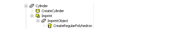 After you perform the imprinting, the History tree retains the Imprint Object command and the create command for the imprinted object