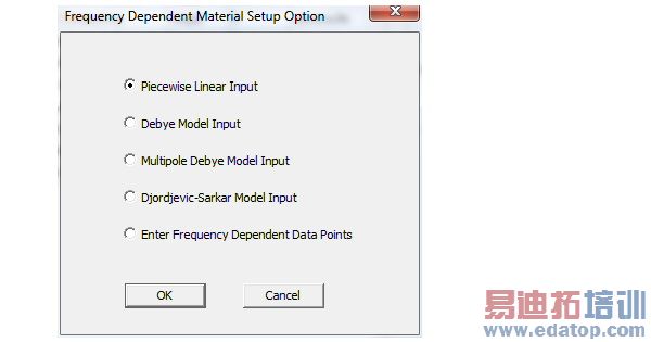 2. In the Frequency Dependent Material Setup Option window, do one of the following: