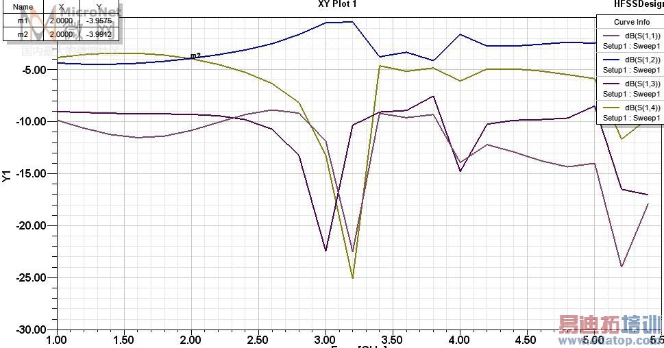 我的是4端功分,2和4端应该是相等的,但是做不到,具体值要到-3.01,那我应该看哪频率点的