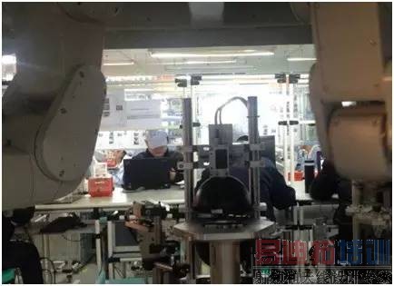 产品经由上料模组上料后,由一个康耐视相机配合6轴的机器人抓取上料,确保每个产品在以后的电测和外观检测时能保持位置一致。然后产品被平台送至电测模组,在电测模组结束后,由一个6轴的机器人将产品放在外观检测模组。外观检测模组在工作完成以后,通知另外一个4轴机器人取料。在整个过程中,组程序会记录每个模组的不良产品,最后由该4轴机器人将所有的产品分类放置。