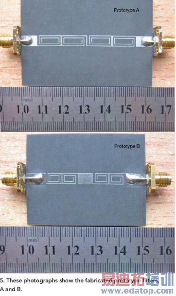 图5:该照片显示了所制造的原型滤波器A和B。