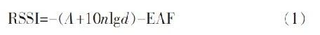 无线信号的接收信号强度和信号传输距离的关系可以用式(3)来表示,其中RSSI是接收信号强度,d是收发节点之间的距离,n是信号传播因子,EAF是环境因子。