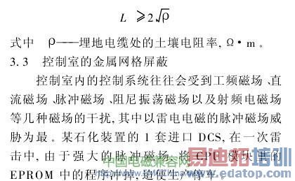 一般认为,防静电材质的表面电阻率不宜超过1011Ω/m2。对工程上其他的一些抗干扰的措施,限于篇幅,不再详述。
