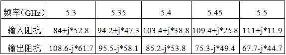 从曲线中提取5.3GHz~5.5GHz的频率范围内输入输出阻抗,如下表所示: