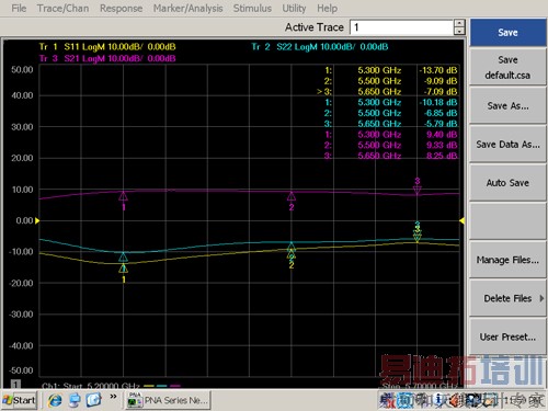 优化后的功放指标满足需求。再使用网络分析仪测试微带输入输出匹配电路: