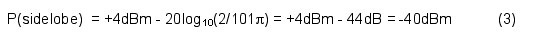 请留意ASK已调信号载波谱线(或波瓣)功率和未调制(CW)载波功率之间的关系。这一点很重要,因为FCC和ETSI规范有时适用于相对功率,有时适用于绝对功率。如果发送器稳定地辐射(未调制) P0瓦功率,然后采用占空比为50%的ASK数据流进行调制,那么调制后辐射的总功率将减半,即为P0/2。而且,调制会形成边带,所以频谱的主瓣(载波)只包含了ASK已调信号一半的功率。因此,将调制旁瓣功率与发送器的CW功率相比时,等式1中的功率比应再减去6dB(即CW功率与ASK调制后载波谱瓣功率的比值)。