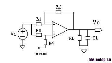 用第二个图仿真的话,Vcom给个合适的电压偏置,VO不超过输出访问,R1=R3 R4=R2.